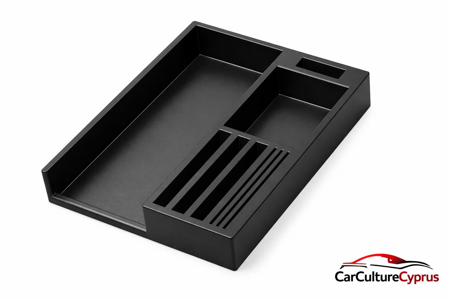 Designed to fit precisely into the factory compartment, this insert creates divided storage space for cards, garage remotes, keys, small accessories, and everyday essentials — keeping everything secure and easily accessible.